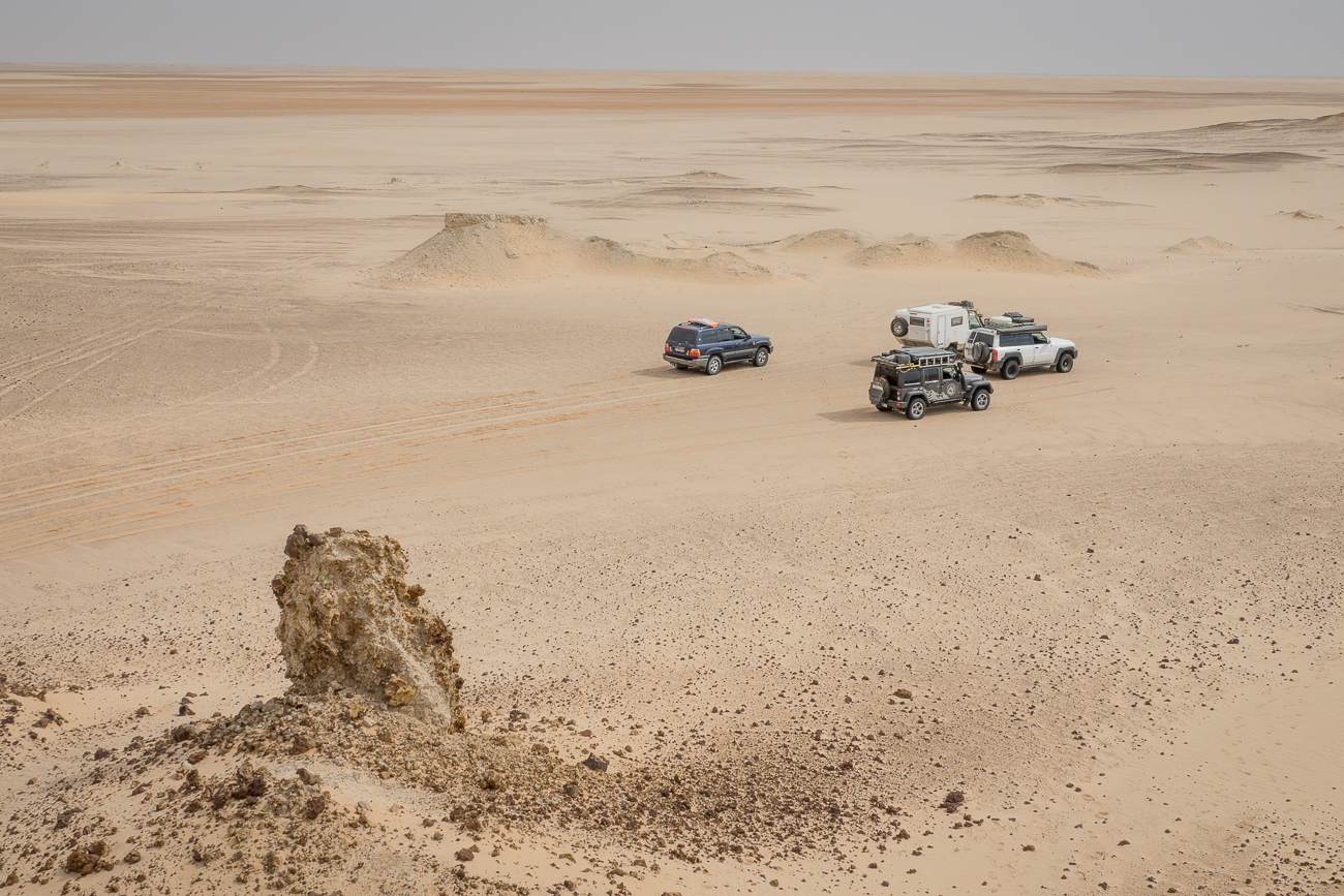 Pour nous réunir, tout commence comme à chaque voyage, surtout ceux vers la Mauritanie, par un bivouac au bord de la lagune de Dakhla chez un ostréiculteur pour partager des huitres. Une fois pasé la frontière notre boucle de cette année. Banc d’Arguin du Nord au Sud puis les sites Néolithiques bordés par des chaines de dunes d’Ifrizouîtene - Amlil - Amatlich. Ensuite boucle Atar - Atar par les Eglabs d’Iguilîd, bivouac au puit de Toueirma. Poursuite vers l’Oasis de Tergit puis visite aux crocodiles de Matmata-Tartega. Après, un grand plateau pour atteindre les falaises de Eyriera, descente dans la plaine de Ittilaf Telli jusqu’au puit de Taskass. Sorti de Tamchekket notre but rejoindre les crocros de Merchaka. Dans le région de Kamkossa visite émouvante dans un village peul. Fin de notre programme au bord du fleuve Sénégal.