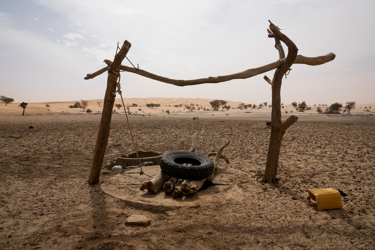 TASKASS. Piste pour descendre sur TAMCHEKKET. Un puit.